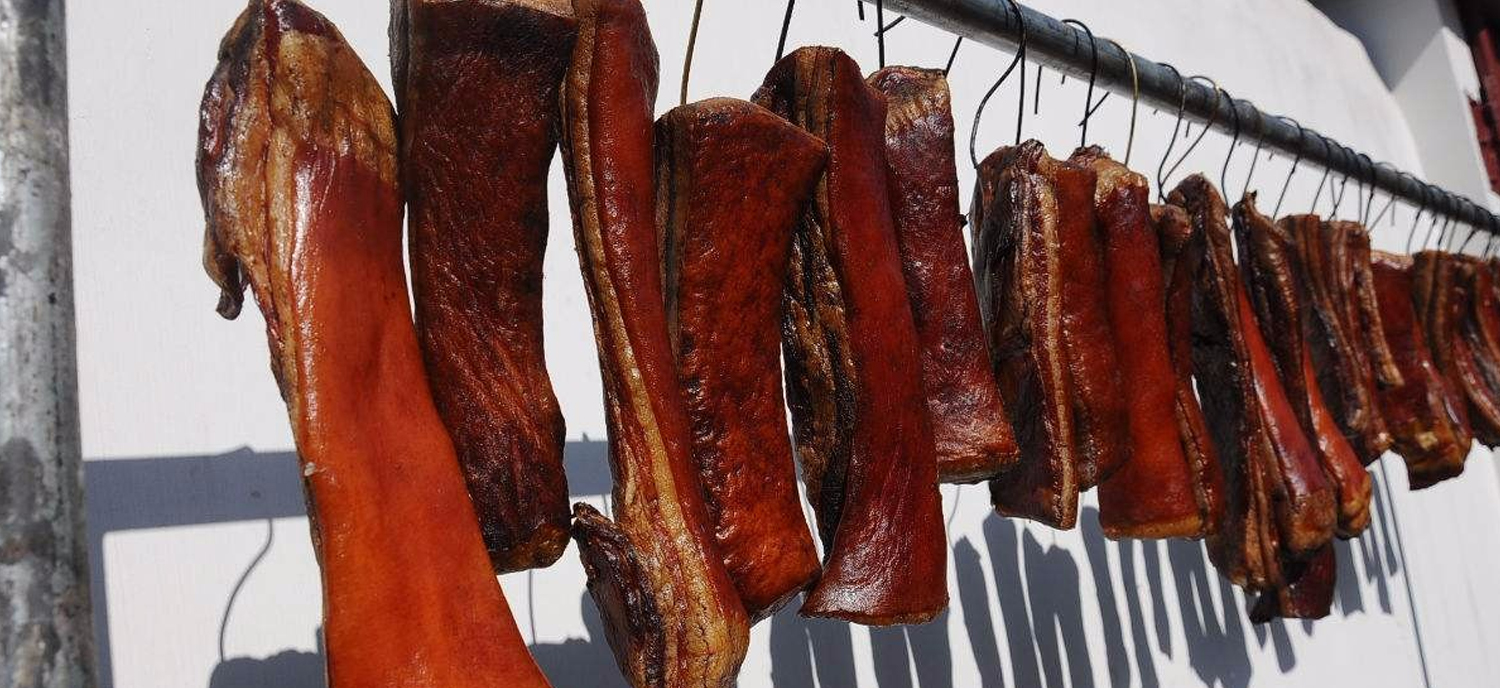 剑阁被誉为“腊肉之乡”,剑阁腊肉采用特有的柏树丫枝烧烟熏干而成,其色、香、味俱佳。剑阁人每年冬季腌制腊肉,或宴请宾客,或赠送亲友,大年三十时,人们饮酒而食腊肉,堪称佳品。